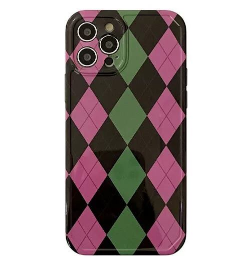 【スマホリング付き】【カメラレンズ保護】チェッカーズ iPhoneケース caseiphone チェック simple covers シンプルケース ケースカバー アーガイル柄iPhoneケース グリーン 菱形Argyle check green purple パープル Black ブラック スマホスタンド スマホグリップ