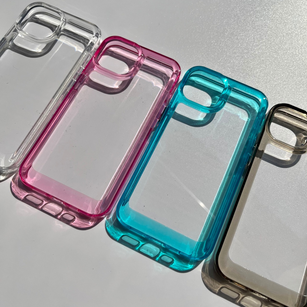 フレームがカラーのクリアケース。
